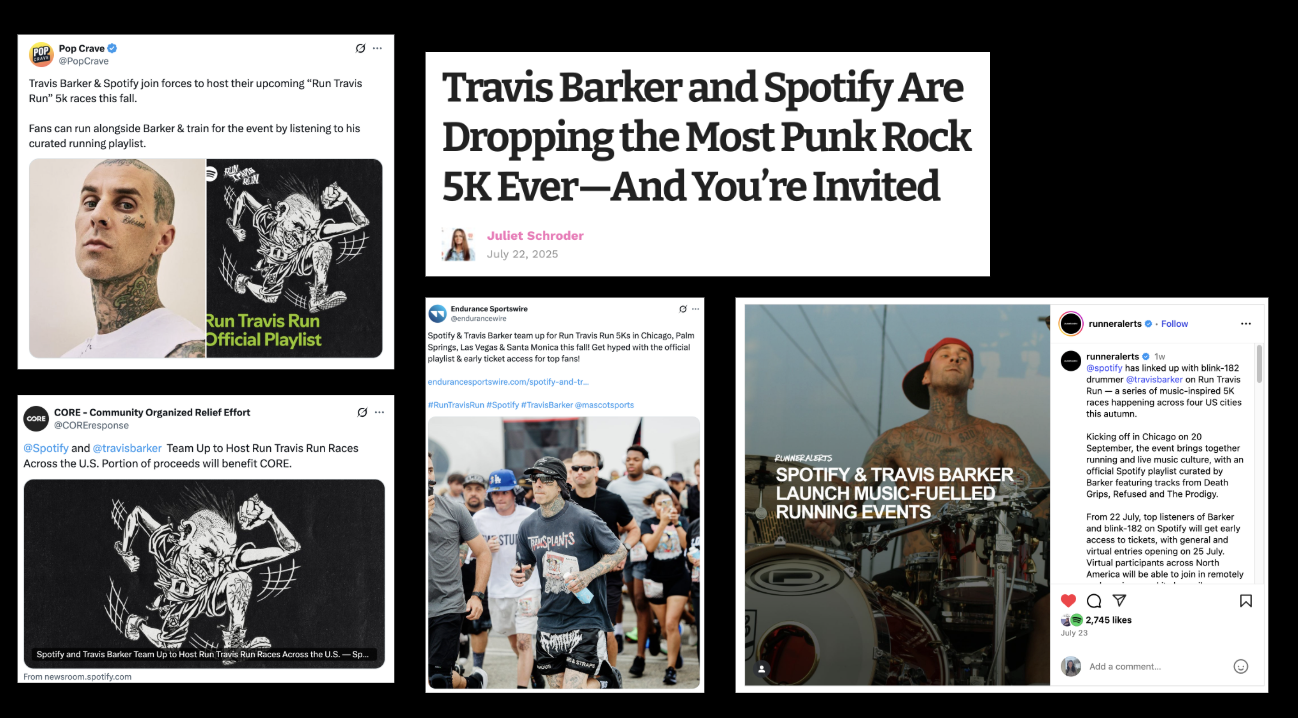 And because Spotify is a place for extreme individuals to let their freak flag fly, we united punk fans and runners through playlists and data by inspiring them to be who they are and inviting them to come run with us.